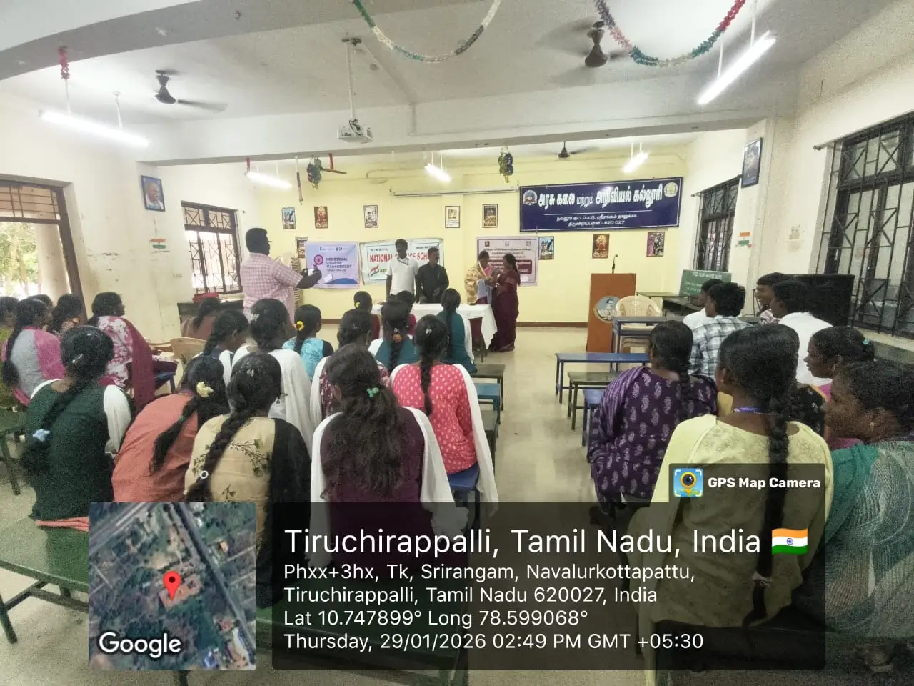 சிறப்பு முகாமின் முதல் நாளான இன்று, திருச்சி மாவட்ட மனவள பயிற்றுநர் கவிதா அவர்கள், மாணவ மாணவிகளுக்கு. மன நலத்தின் அவசியம் பற்றியும் போதைப்பொருள் விழிப்புணர்வு பற்றியும் சிறப்புரை ஆற்றினார்.