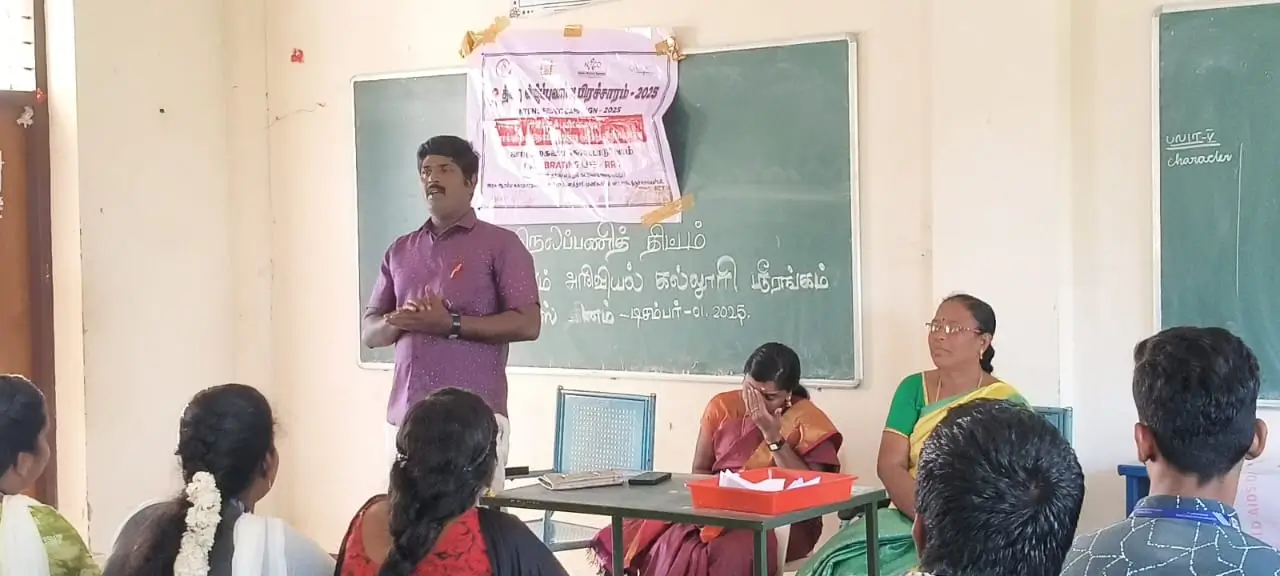 உலக எய்ட்ஸ் தினத்தை முன்னிட்டு சிப்புரை இனாம்குளத்தூர் செவிலியர் (Nurse)மற்றும் நாட்டு நலப்பணித் திட்டத்தின் சார்பாக 1/12/2025 நமது கல்லூரியில் விழிப்புணர்வு நிகழ்வு நடைபெற்றது